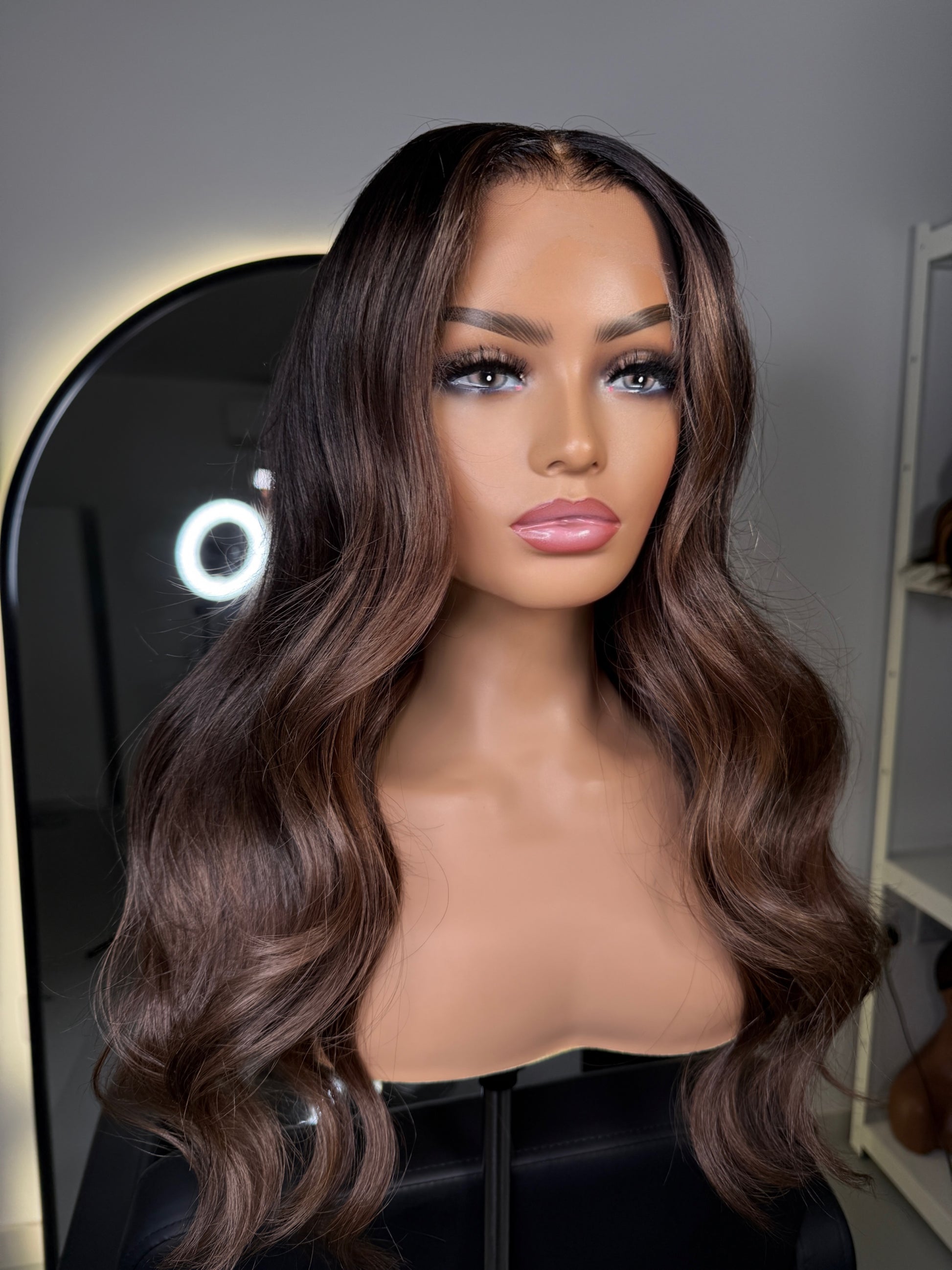 The Ready To Ship Clara Wig features a brown balayage with a classic style that captures the understated elegance of London’s refined neighborhoods. Crafted as a full lace HD wig with a medium cap size, it offers a natural hairline and seamless blend for a confident, effortless look. Perfect for women seeking sophistication and style without compromise.