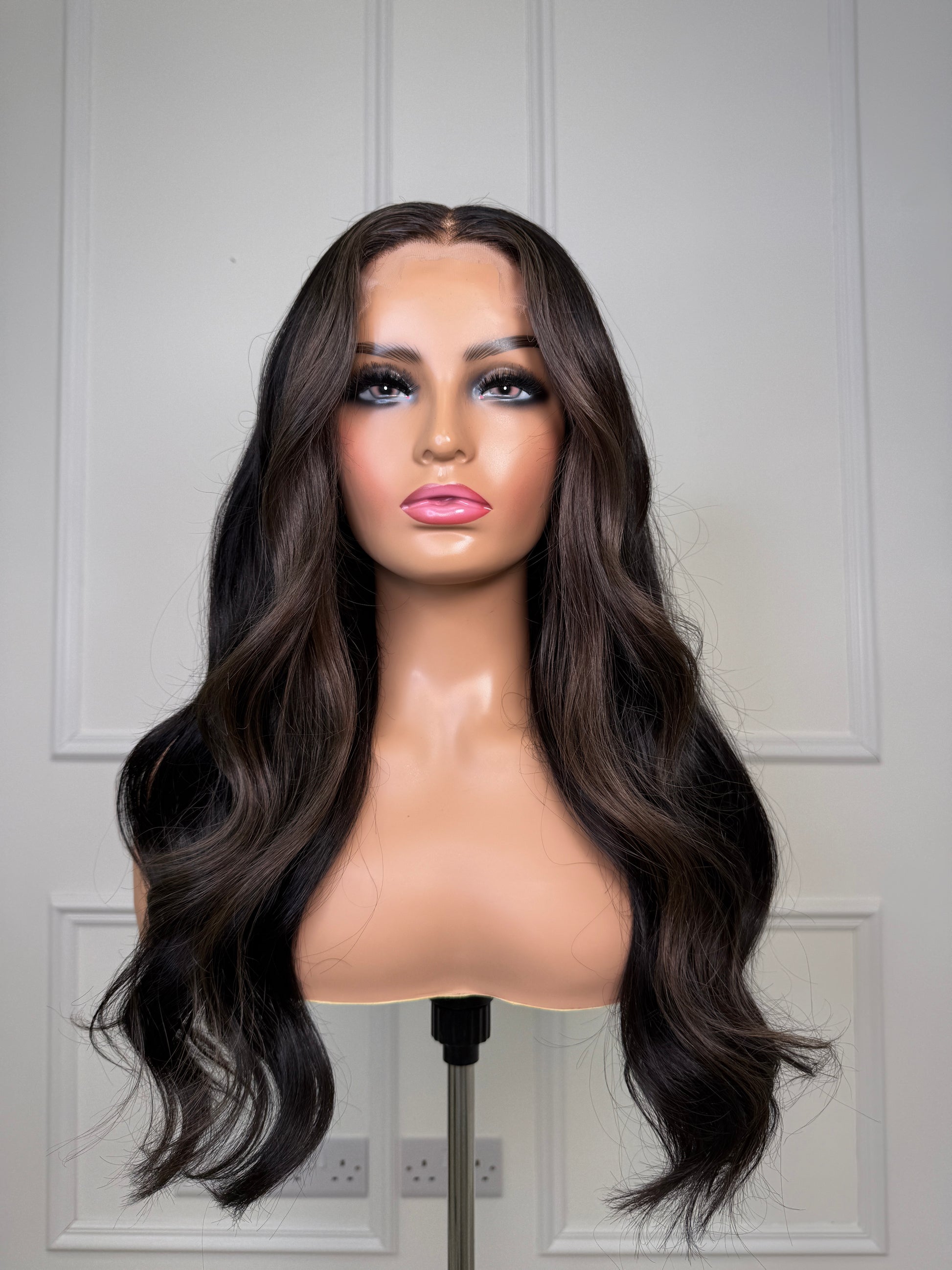 The Diana Wig features a sophisticated smokey brown money piece that frames the face beautifully, while the remaining lengths showcase a rich, very deep dark brown tone. This 13x4 HD lace construction delivers an undetectable hairline and seamless blend with natural hair. Pre-styled and ready to wear, the Small/Medium cap size offers a comfortable, secure fit. The dimensional colour combination creates depth and movement, making this wig an ideal choice for those seeking a polished, natural-looking style with immediate wearability.