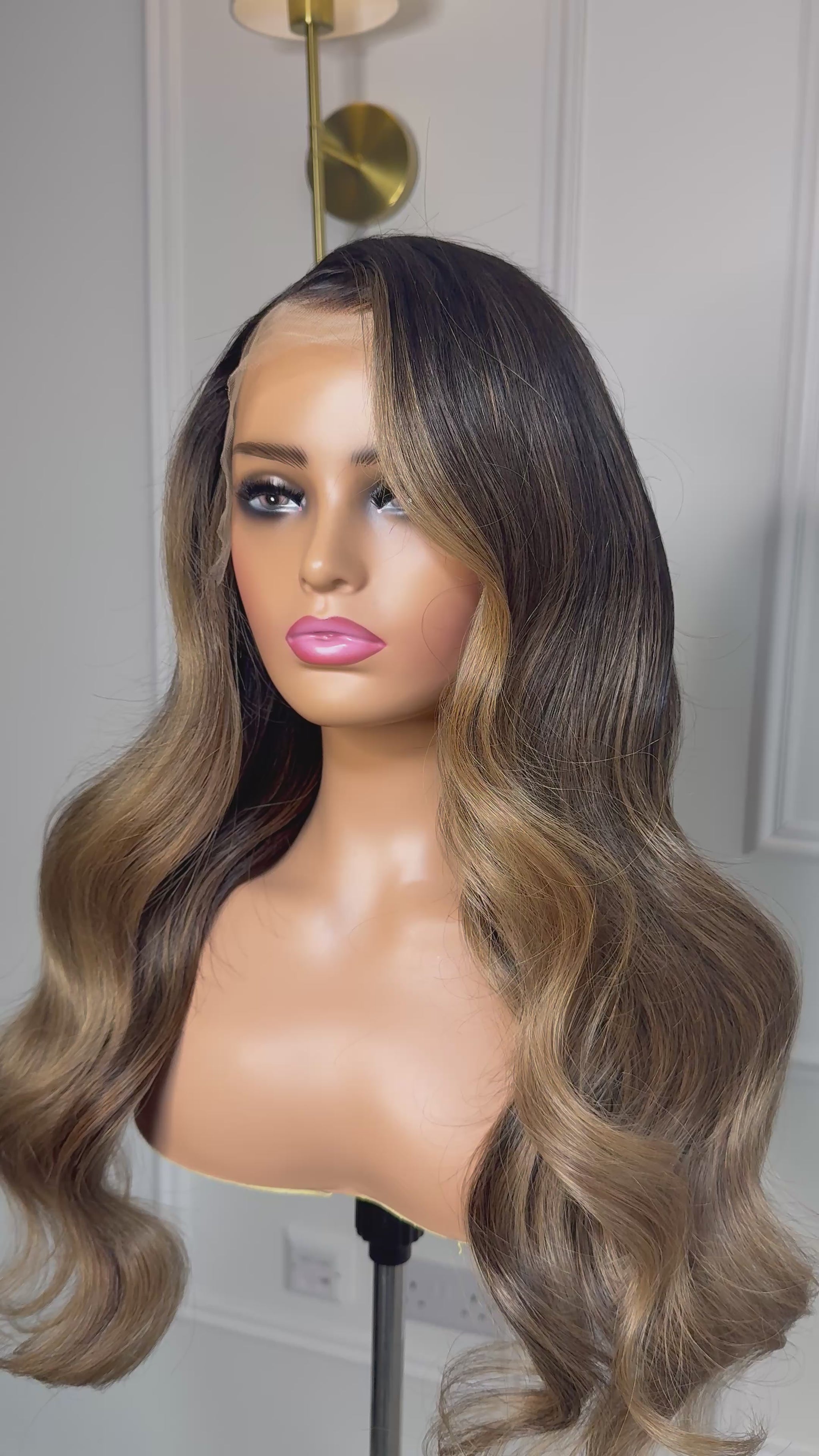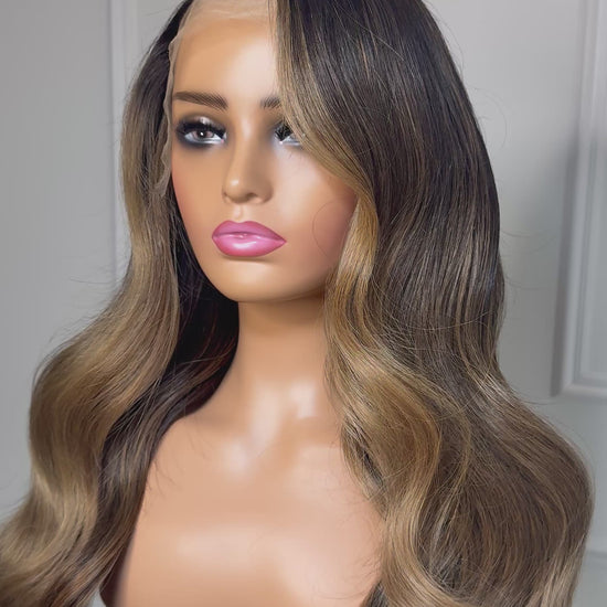 The Ready To Ship Florence Wig in a 9x6 HD lace with a large cap size offers an effortlessly natural look, blending golden biscuit honey tones with dark roots for seamless dimension. Inspired by the elegance of London’s historic streets, this wig combines classic sophistication with modern style, delivering a poised and confident finish for the discerning woman seeking both comfort and timeless appeal.