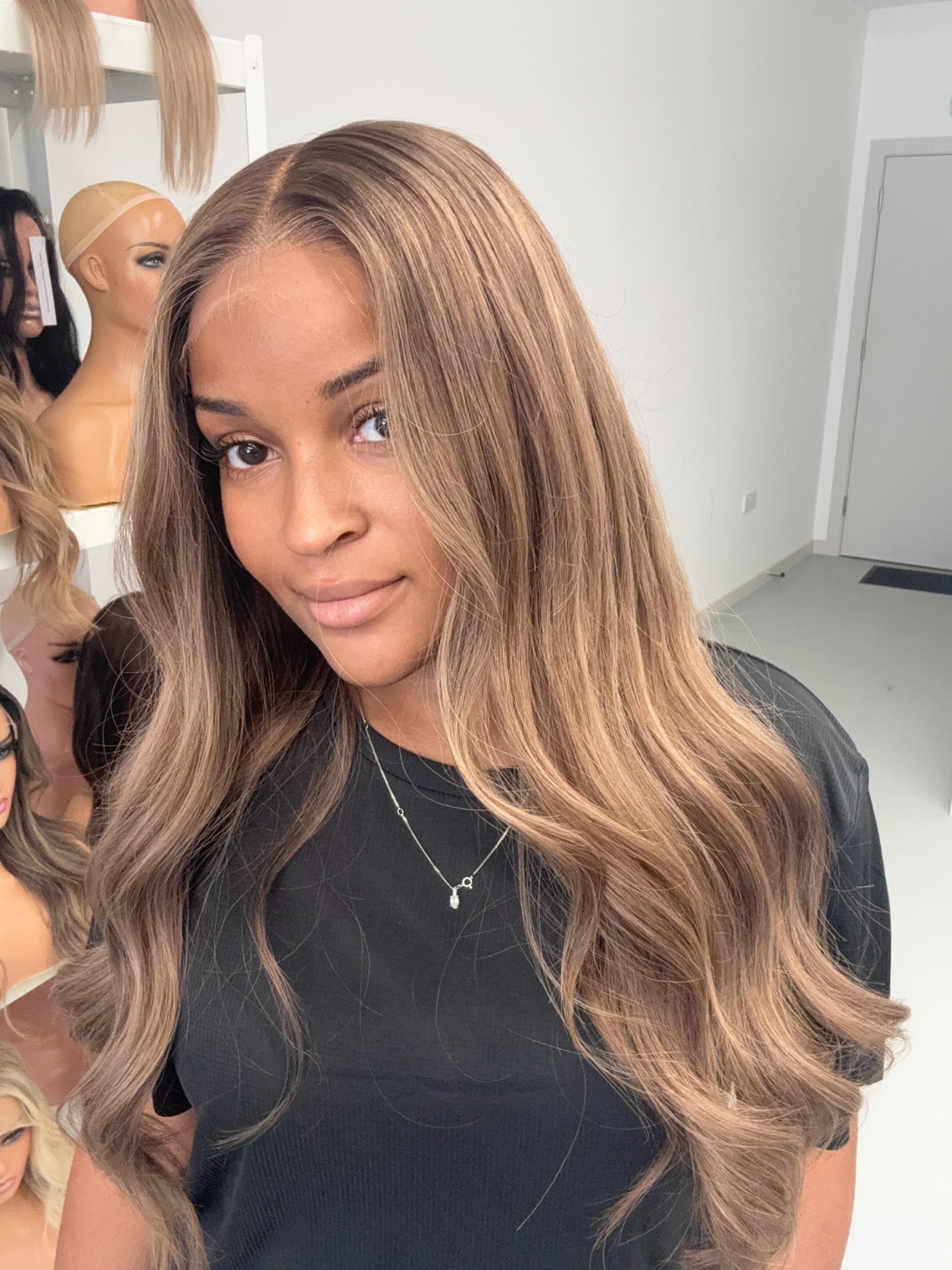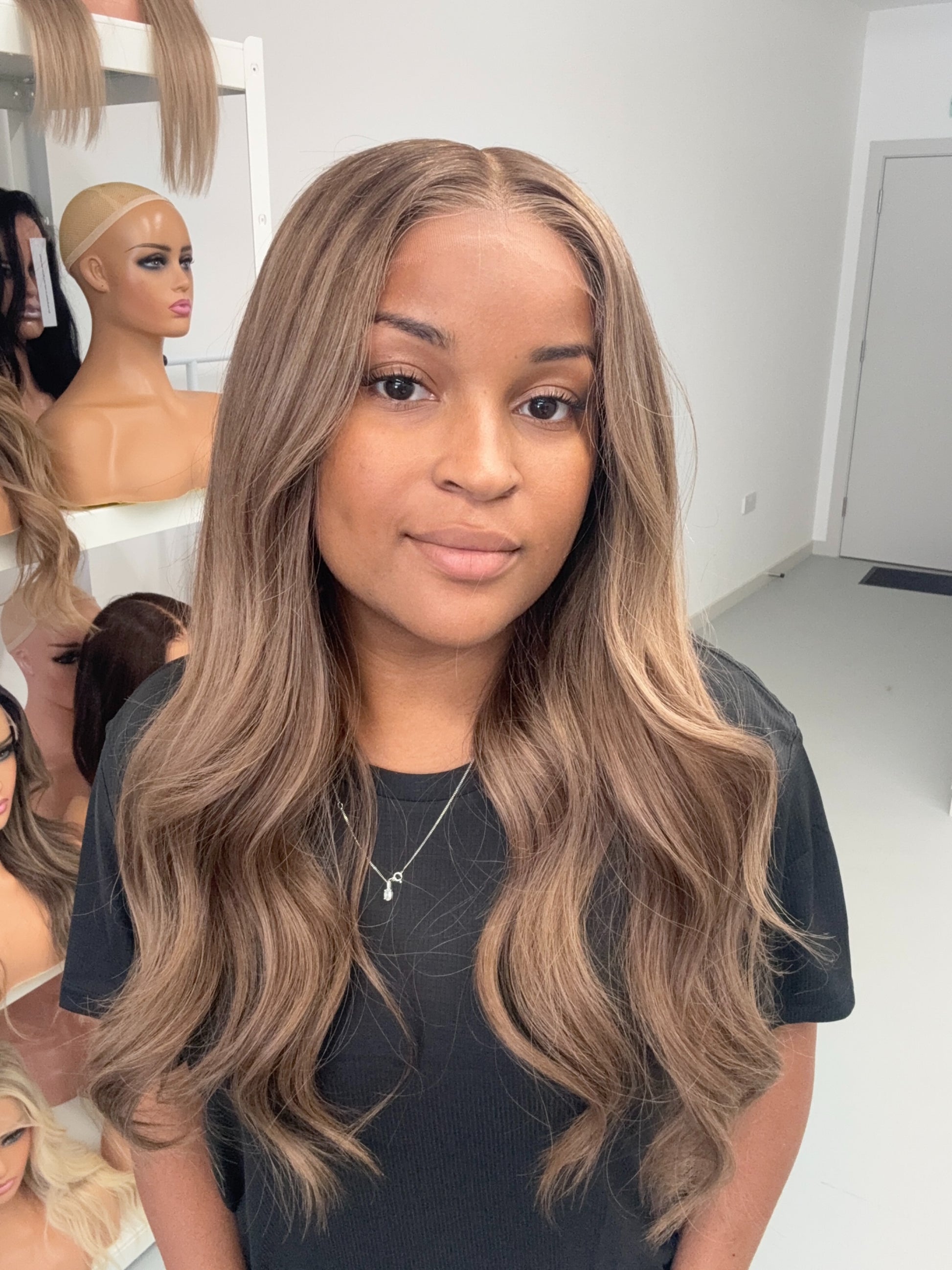 Experience the perfect blend of dark blonde and light brown tones with this Ready To Ship SoHo Wig, designed for a small to medium cap size. Its warm, natural hues evoke the effortless style of a fall stroll through SoHo, enhanced by a 5x5 HD lace that delivers a seamless, undetectable hairline. Ideal for those seeking expert craftsmanship combined with everyday elegance.
